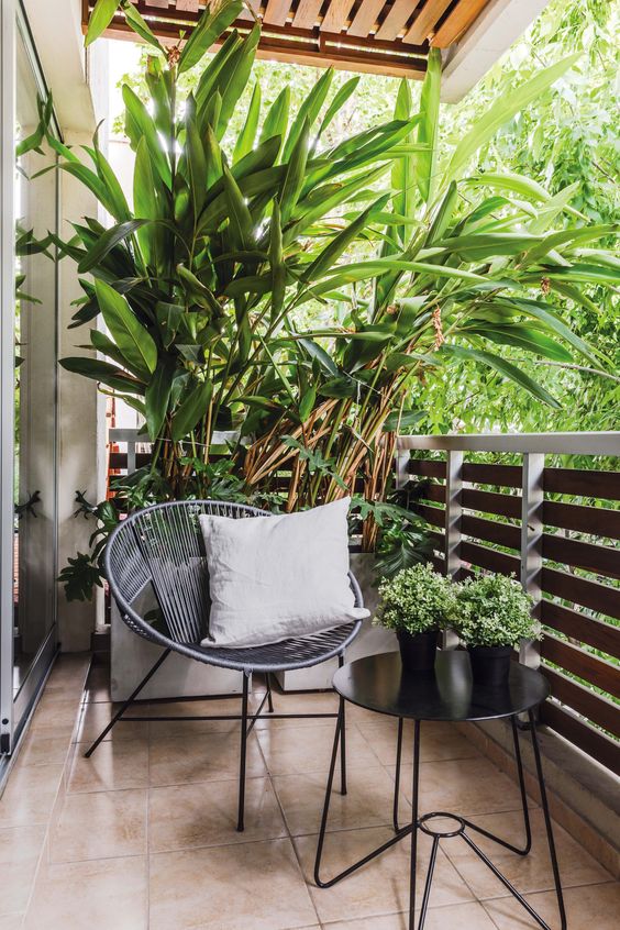 Puedes añadir visualmente un poco más de volumen a tu terraza, ¿cómo? Jugando con alturas, por ejemplo, en los cojines puedes algunos más grandes y otros más pequeños. Así puedes jugar con todos los accesorios y elementos que agregues para obtener altura en cada rincón.